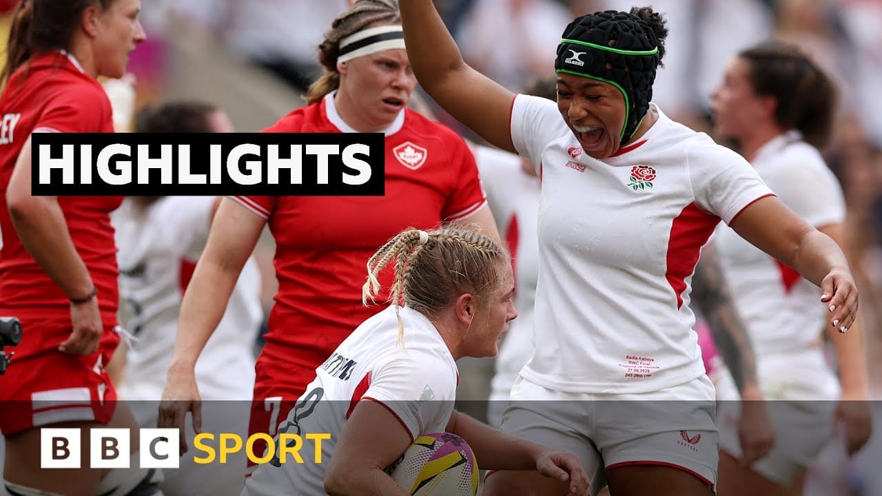 Following their 33-13 victory over Canada in the Women's Rugby World Cup final, England's Red roses show off the silverware to a sea of proud supporters at Battersea Power Station.