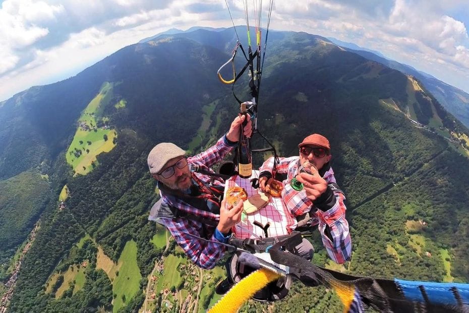 INSOLITE. Ils prennent l'apéro à 1000 mètres d'altitude, accrochés à un parapente