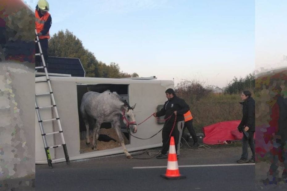 Un cheval sauvé par les secours après s'être retrouvé coincé dans un van renversé