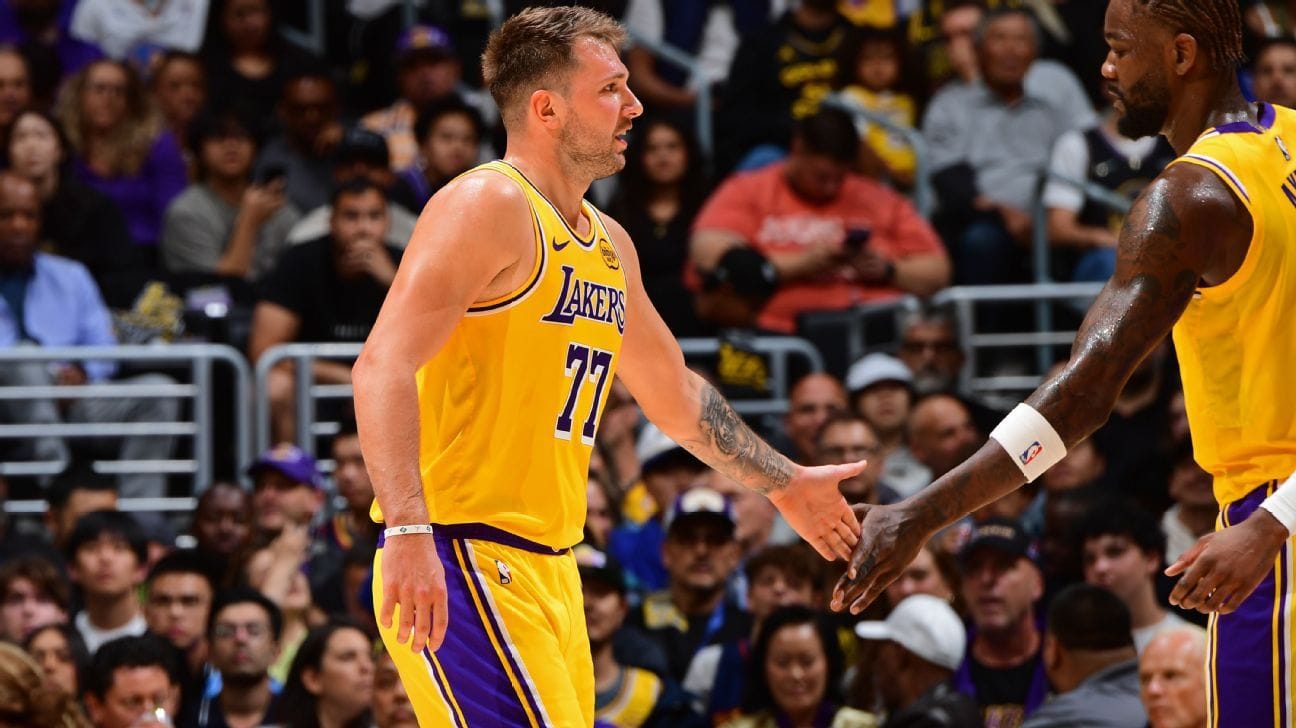 After playing a game-high 41 minutes and scoring 43 points in the Lakers' 119-109 opening night loss to the Warriors on Tuesday, Luka Doncic spent even more time in the training room receiving treatment after the game on the inside of his right leg.